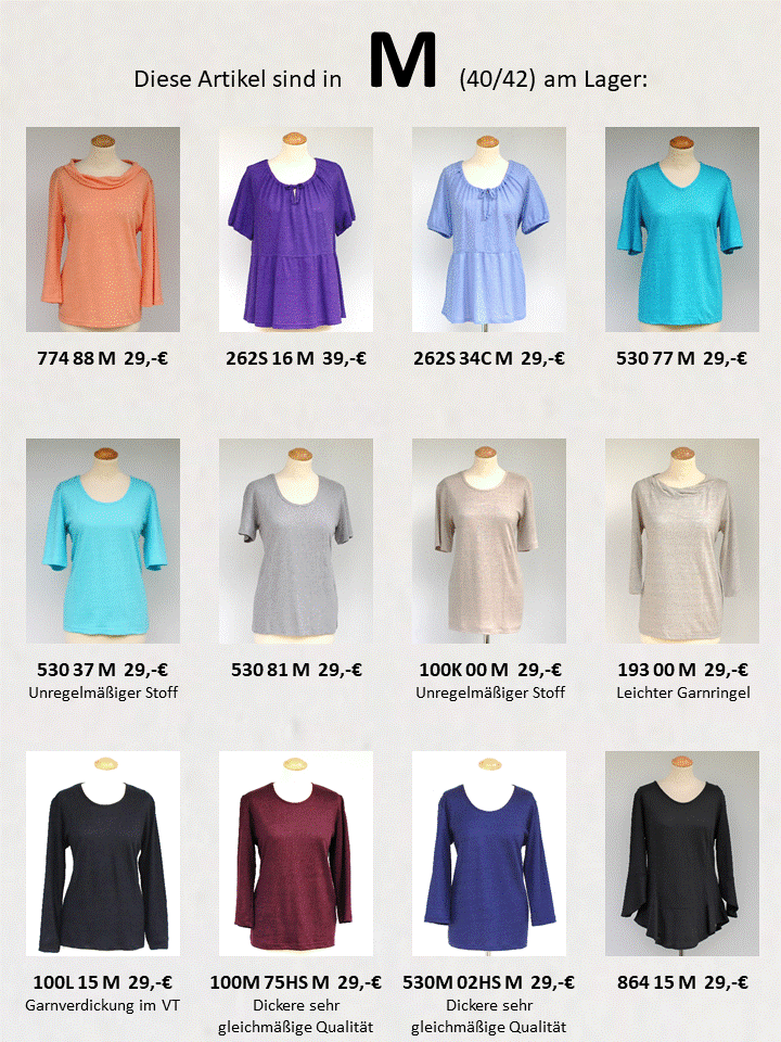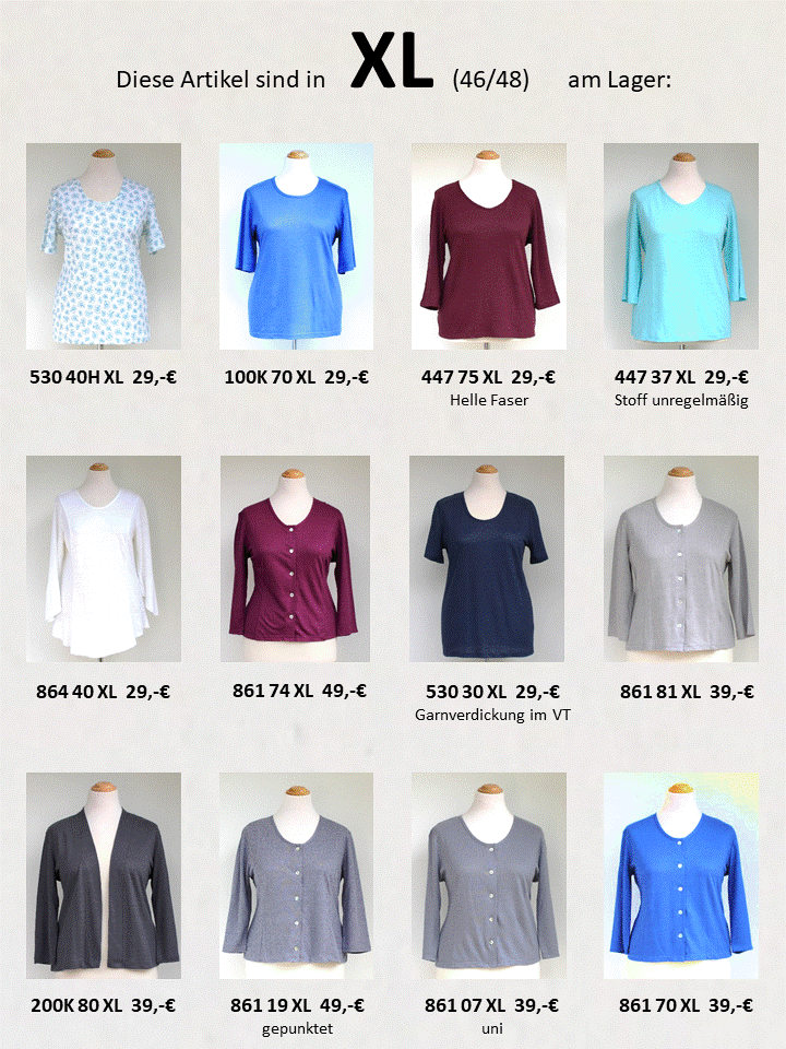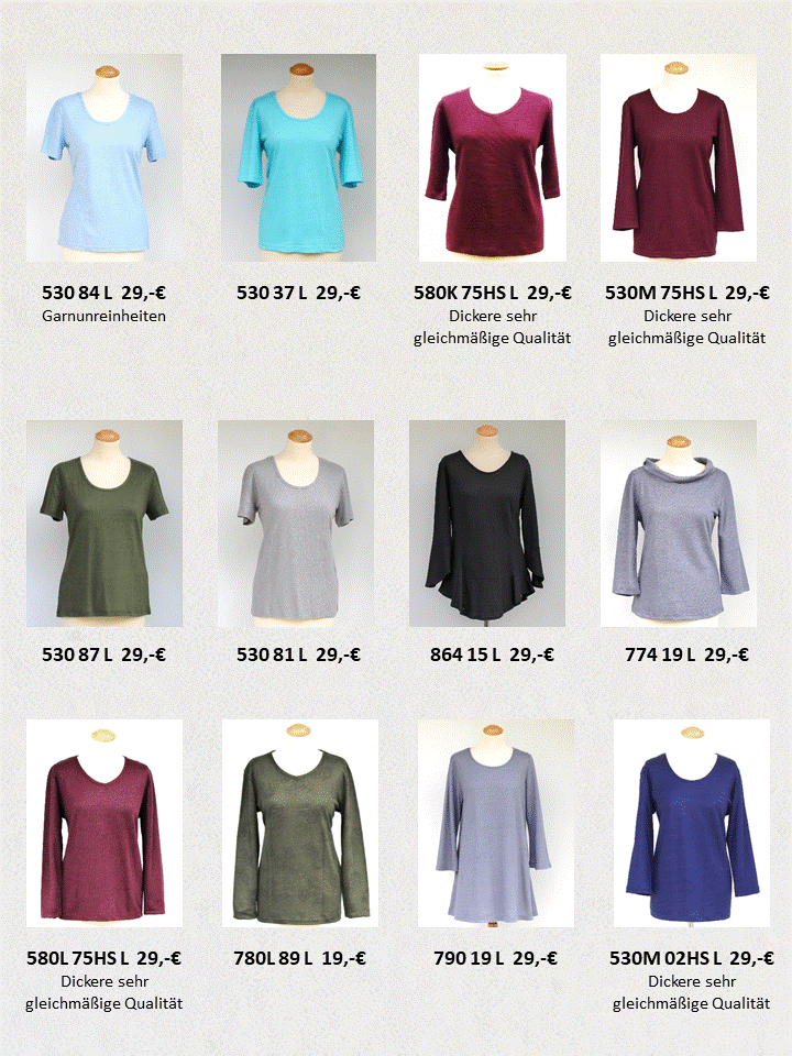 Für Kinder und Herren-Artikel gibt es einen Bestellshop, der mir für die DOB jedoch zu unflexibel und aufwendig ist, um die Ware genau beschreiben und sortieren zu können. Besser ist es, wenn Sie sich die Artikel aufschreiben und mir in einer Mail an Tanja.Bach@web.de mitteilen, was Sie bestellen möchten. Z.B. in der Form: Shirt 100K 90S XL, dann ist die 3-stellige Zahl die Artikelnummer ev. mit K, M oder L für kurzärmlig, mittel oder langärmlig, die 2-stellige die Farbnummer ev. mit S für Schmetterlingsdruck, HS für Heavy-Single .... und Ihre Größe. Damit ist das Kleidungsstück genau definiert und dennoch können Sie leicht einen Wunsch oder eine Frage anfügen.